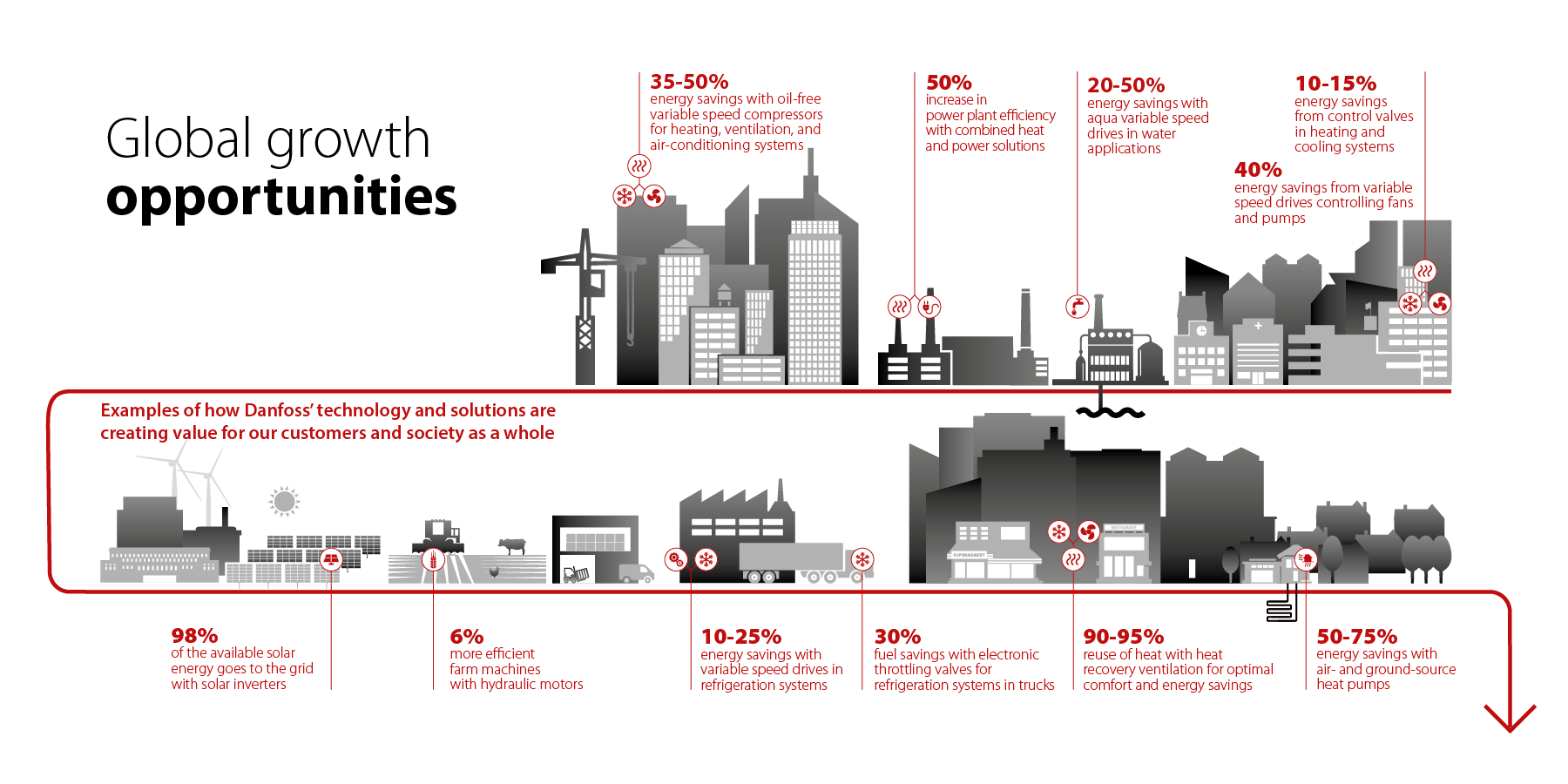 Danfoss udvikler teknologier, der gør verden i stand til at få mere ud af mindre indenfor infrastruktur, fødevarer, energieffektivitet og klimavenlige løsninger. Vi har siden 2014 arbejdet tæt sammen med Danfoss omkring designudvikling og produktion af intern og ekstern kommunikation.
