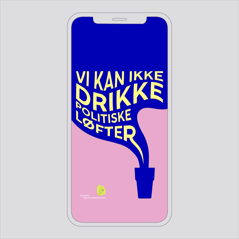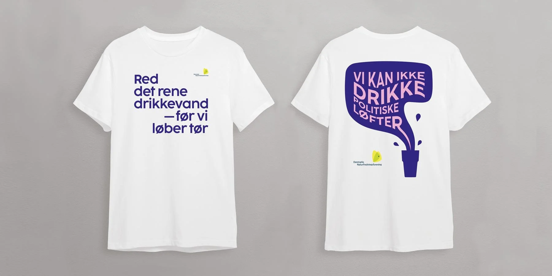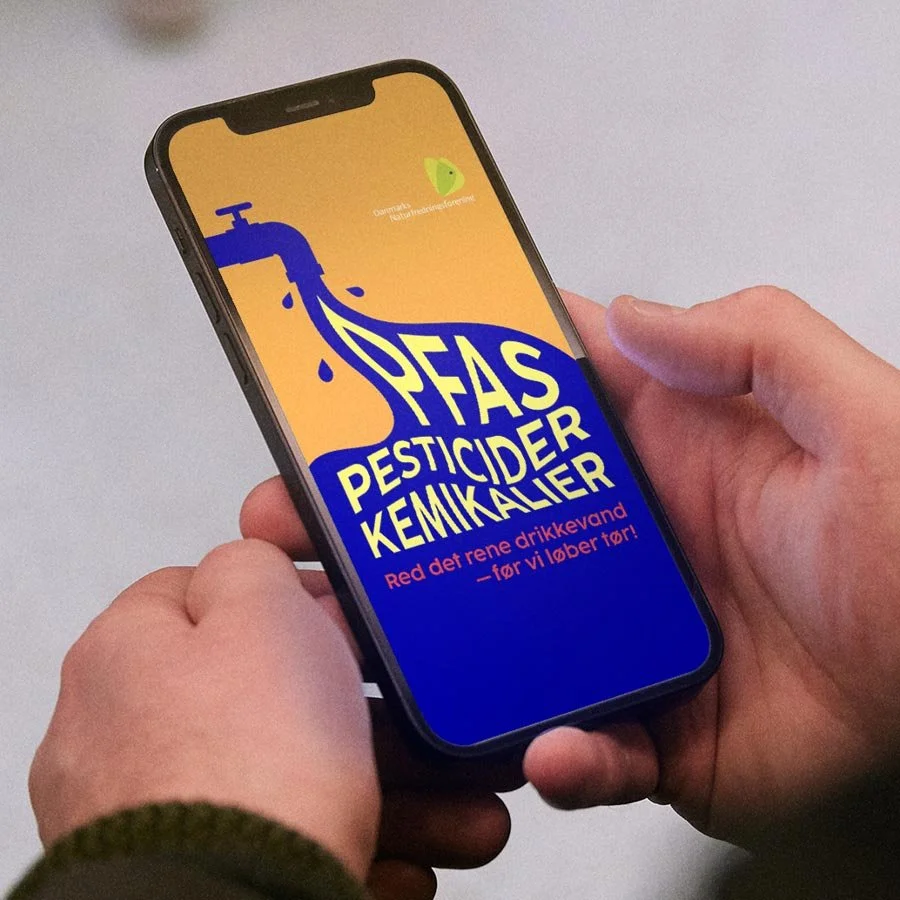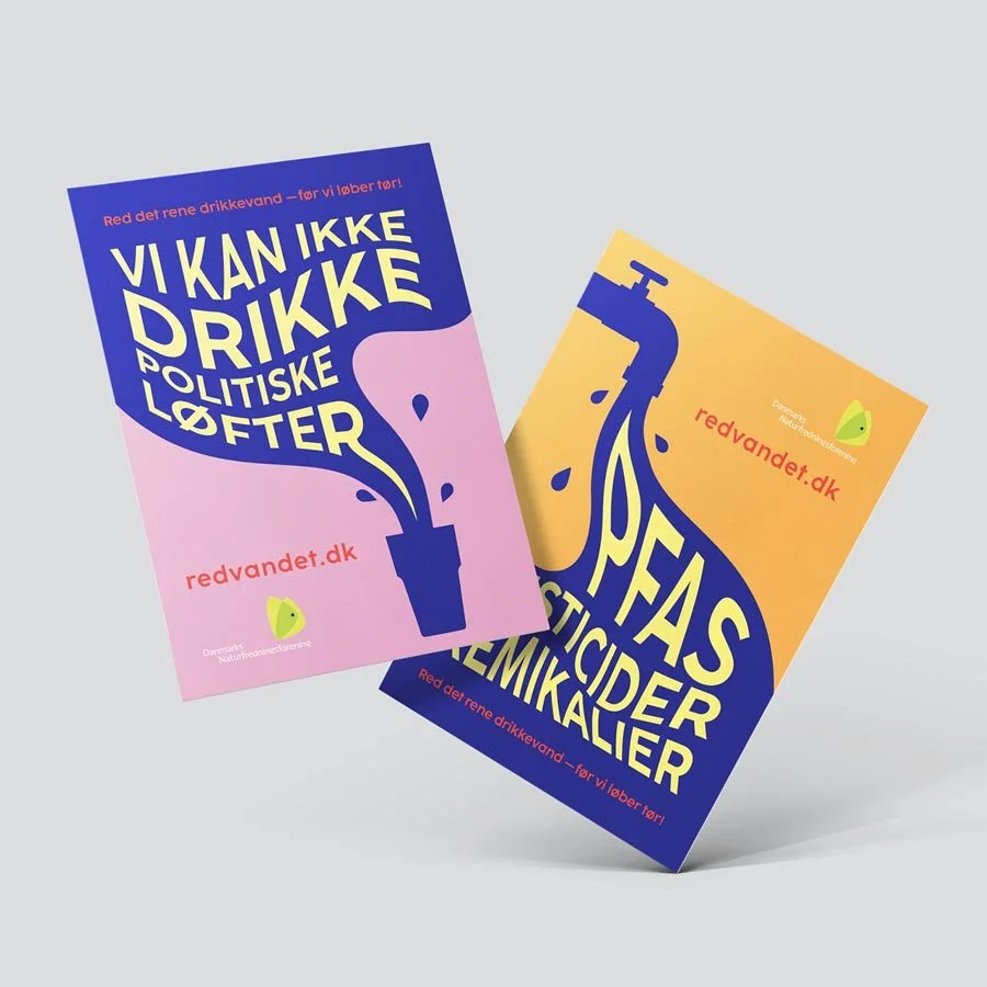 Med kampagnen stiller Danmarks Naturfredningsforening skarpt på vores drikkevand. Vi har udviklet design til kampagnes elementer – bl.a. digitale annoncer, billboards, abribus, merchandise og meget mere. Kampagnens mål er en underskriftsindsamling, som skal sætte emnet på dagsordnen i regeringen og Folketinget.