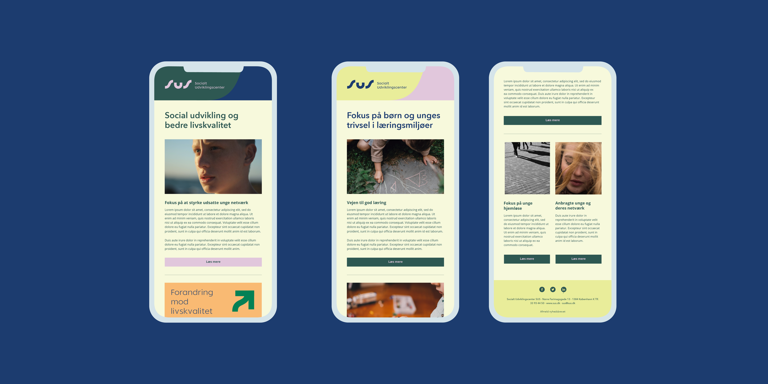 Vi har hjulpet SUS med at skabe en visuel identitet der har et tidssvarende og markant udtryk, er dynamisk og taler til målgruppen.